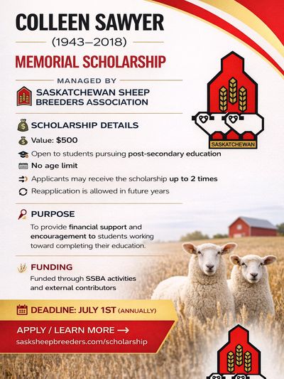 In 2003 she was nominated to the Saskatchewan Agriculture Hall of Fame for outstanding contributions to agriculture. In 2005 she was an Honour Scroll recipient from the Saskatchewan Livestock Association. Upon her volunteer retirement, the Saskatchewan Sheep Breeders Association announced a youth scholarship in Colleen’s name, because she was a true pioneer for our Saskatchewan Sheep industry.